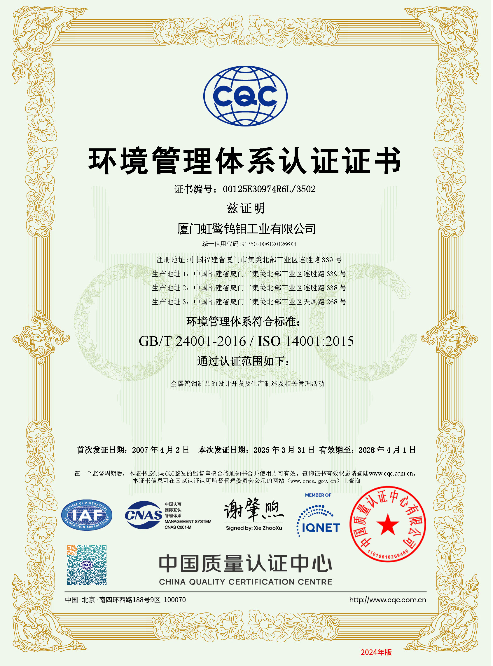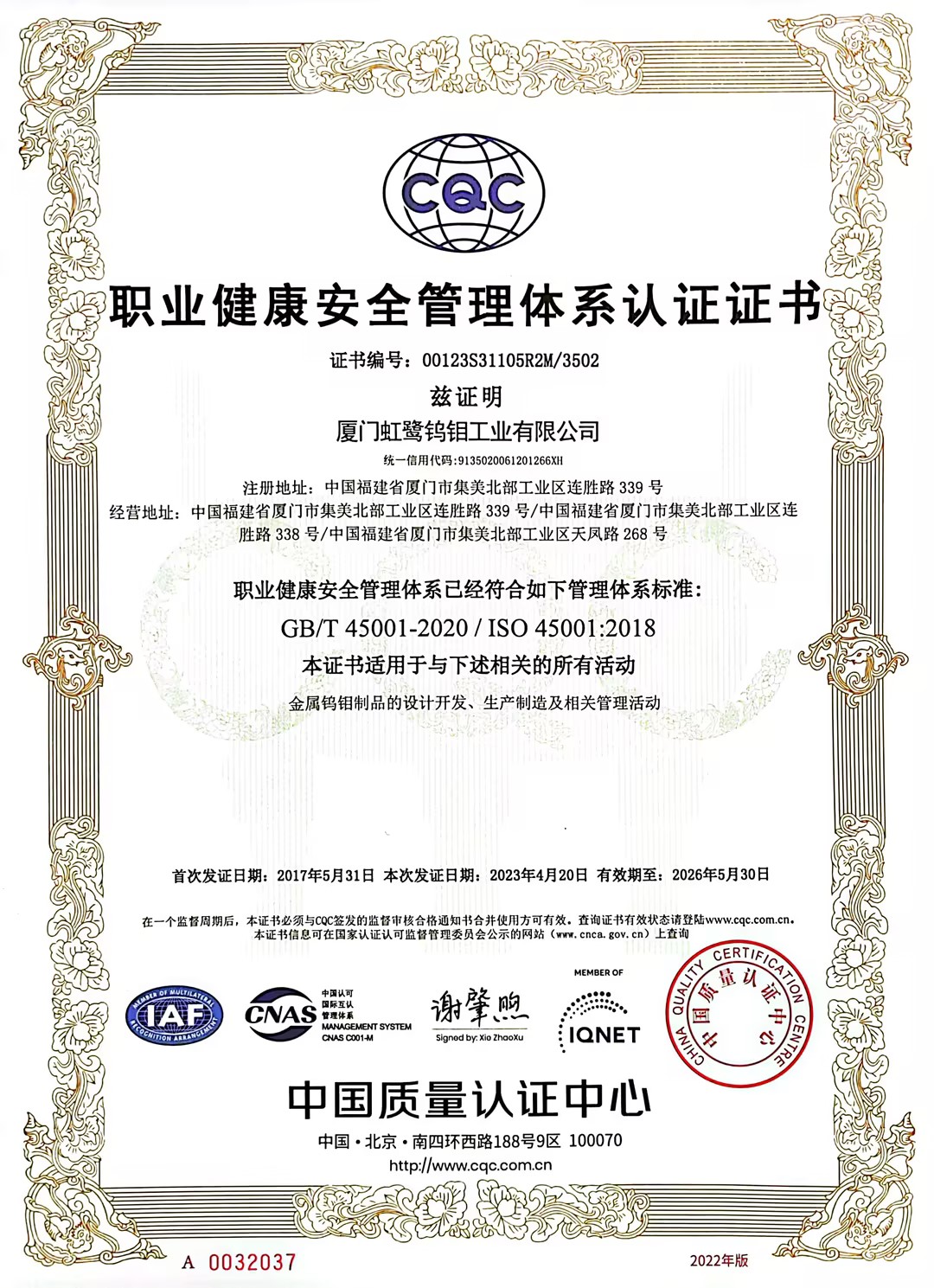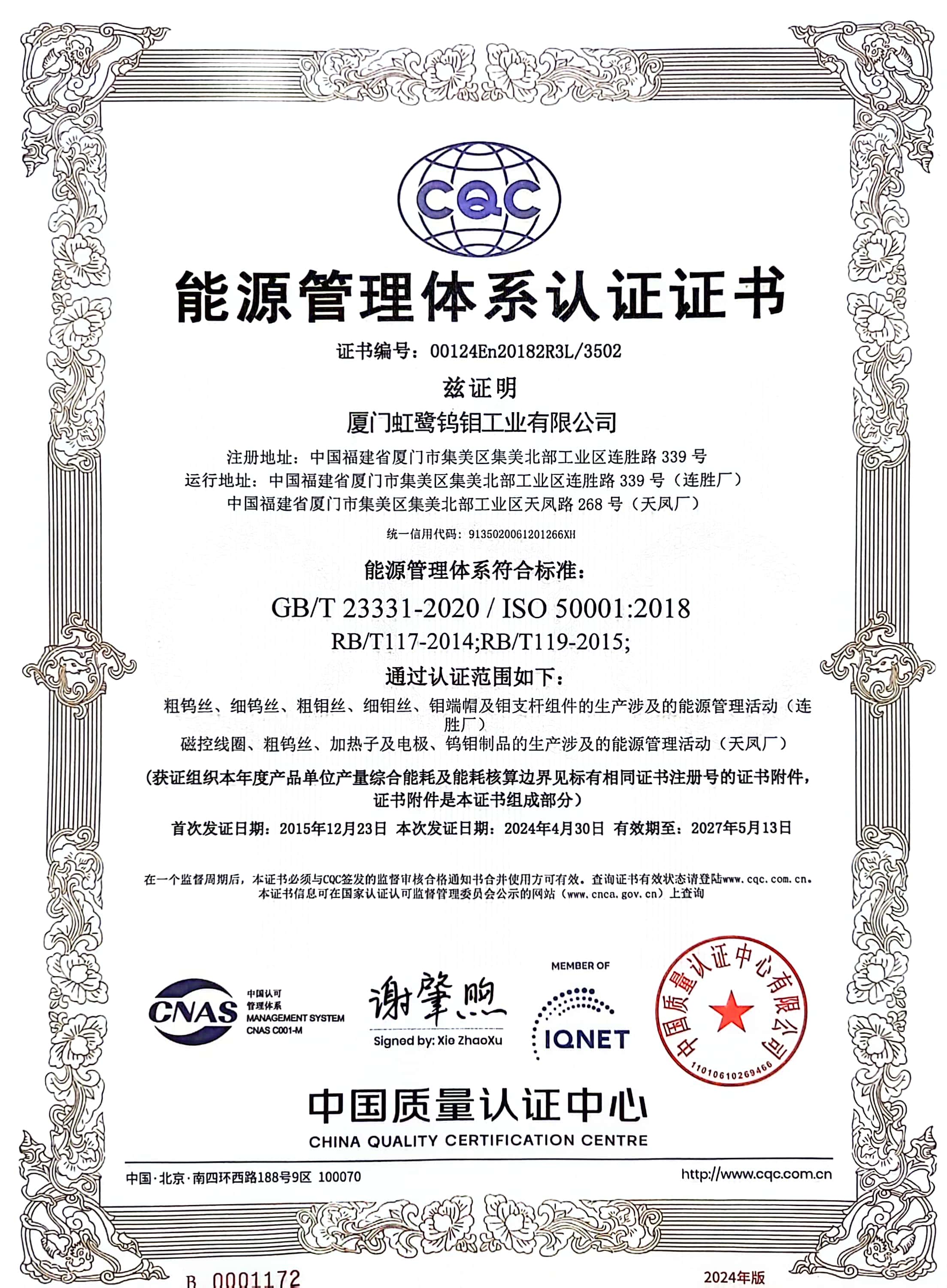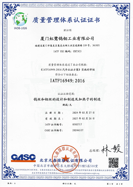廈門虹鷺鎢鉬工業(yè)有限公司是一家成立于1992年的中韓合資國有控股企業(yè),注冊資金36100.5萬元人民幣,是上市公司廈門鎢業(yè)股份有限公司的核心成員,國家高新技術(shù)企業(yè),擁有國內(nèi)鎢鉬加工行業(yè)首家企業(yè)博士后工作站,與中科院金屬研究所聯(lián)合成立了稀有金屬加工實驗室。